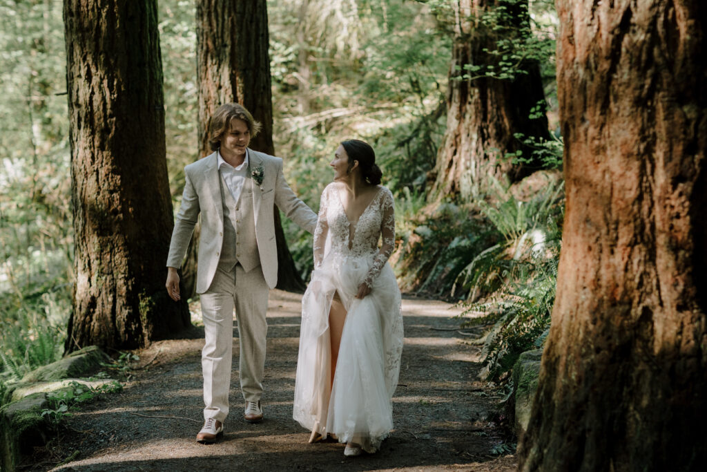 They opted to spread their celebration into a multi-day event, starting with an elopement-style adventure in Olympic National Park, followed by an intimate ceremony at Hoyt Arboretum’s Redwood Observation Deck in Portland, Oregon’s Washington Park, ending with a small reception complete with food, games, and music. They also made time between their ceremony and reception for a pit stop of ice cream at Portland’s iconic Salt and Straw *if you know, you know*.